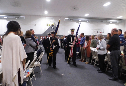 Picture Right is of the Honor Guard facing the audience and the Arvin Family member facing the Flags. |