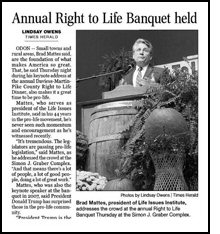 Brad Mattes, Main Speaker for Right to Life Banquet |