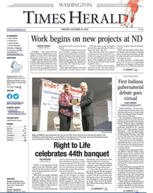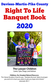 U.S. Senator Mike Braun was the Main Speaker and Candidate for Attorney General in Indiana Todd Rokita along with other elected officials were in attendance. Dennis Wiscaver, the Pastor at Jesus Christ Our Firm Foundation in Petersburg was one of the ministers on the program for the evening. The Clinton and Bridget Lawyer Family of Odon Indiana was honored as the Adoptive family of the year as they have adopted 4 children from the same family while raising 3 children of their own. The Community Service Awards were presented to Mary Jo Sellers, Chuck Wichman, Jeff Collison and Steve/Nancy Wichman for over 30 years of service to the Right to Life Organization and to their church and community.