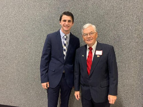 Pictured above is Colin Craig, a former student at Pike Central H.S. and a Freshman at Western Kentucky University in Bowling Green Kentucky as he gives his winning essay after being selected the winner in the Donna Gentry Scholarship that took place earlier this year. Craig had competed with area high school seniors for this honor and was selected to give the essay at the Annual Right to Life Banquet which was held in Daviess County. Craig also sang "God Bless the USA" for those in attendance. This Banquet is held each year and draws Right to Life members from Daviess, Pike and Martin Counties as over 300 attended this year in spite of the health concerns caused by the covid-19 virus.