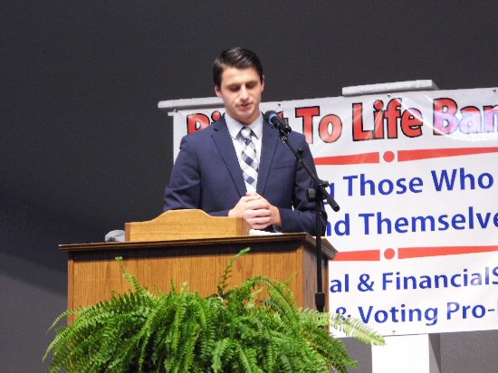 Pictured here is Colin Craig and Daviess County Right to Life President Louis Kavanaugh Jr. at the Right to Life Banquet on Oct. 15. Colin Craig who was the winner of the Donna Gentry Scholarship this year led the Pledge of Aligiance, also gave his winning essay at the Banquet and delighted the crowd with his singing of "God Bless the USA" by Lee Greenwood. Colin is gifted in so many ways and it is hoped someday to see him active in the pro-life movement. He is a freshman at Western Kentucky University in Bowling Green Kentucky. |
